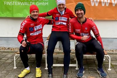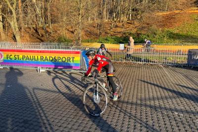 Dem OSC-Cyclingteam wurde wieder eine hervorragend präparierte und vor allem sehr abwechslungsreiche Strecke in Blankenfelde beim Cross am Park geboten. Wurzelige Trails, Sandberge hoch und runter, 180 Grad Kehren, Schräghänge, einmal im rechten Winkel durchs Volleyballfeld und wer es drauf hat, sprang auch über 2 Baumstämme. Und nach dem heftigen Regen in der Nacht, war auch der Untergrund in der ein oder anderen Kurve etwas rutschig.