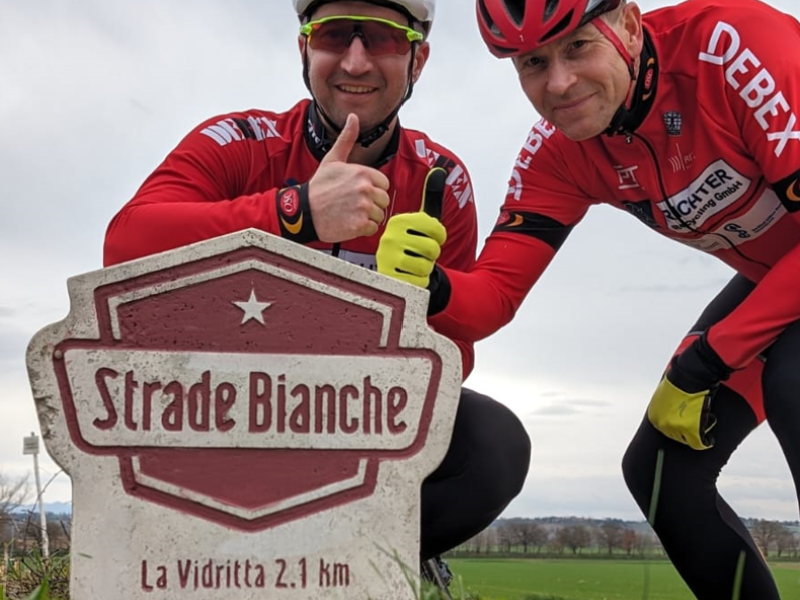 Am vergangenen Sonntag fuhren Björn McAuly und Robert Wagener vom OSC-Cyclingteam das erste Saison Rennen in Italien. Der Klassiker Grand Fondo Strade Bianchi stand an. Aus Startblock 4 ging es hinter etwa 4000 anderen Startern ins Rennen. Bei guten äußeren Bedingung, 10 Grad mit Sonne/Wolken Mix hatten die beiden es besser als die Profis einen Tag vorher getroffen. Nach den ersten schnellen Kilometern hieß es auf den ersten Schotter-Segmenten Defekt frei durchzukommen. Dieses gelang beiden und so konnten auch die finalen und schwersten 20km nicht mehr schrecken und beide erreichten zufrieden das Ziel in Siena. Für Björn reichte es bei seiner Premiere zu Platz 147 in der Klasse M5 und bei Robert Platz 101 in der M3.
