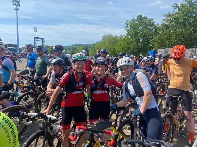 Am letzten Wochenende startete das OSC-Cyclingteams Potsdam beim 3Rides in Aachen. Das Rennen fand im Rahmen des UCI Gran Fondo World Serie statt und diente auch zur Qualifikation zur WM in Dänemark. Mit Fahrern aus 57 Nationen waren die Rennen international gut vertreten. Das zum ersten mal ausgerichtete und einzige Rennen in Deutschland, ging für alle Altersklassen über eine Strecke von 120 km und 1850 Höhenmeter. Gleich nach dem Start zeigte sich, dass nicht die beiden Berge mit fast 6 km Länge als die große Herausforderung galten, sondern die kleinen Zwischenanstiege. Durch zum Teil 15% Steigungen wurde das Feld in immer kleinere Gruppen zersprengt. Begleitet durch einen Defekt und einer versehentlichen Fehlleitung in der Streckenführung, hatte grade Björn McAuly das größte Pech beim Rennen. Alle Fahrer erreichten eine Platzierung, die leider nicht für eine Qualifizierung zur WM reichte. Birgit und Anne starteten beim Gravel-Rennen, während Anne noch mit körperlichen Nachwehen ihres Rennens am Wörthersee kämpfte (Platz 3) erreichte Birgit den 8. Platz.