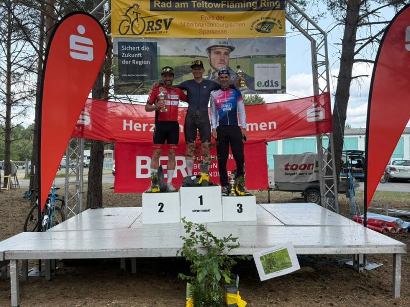 Am Pfingsmontag fuhr Bianca beim Hintersee Zeitfahren auf den 1. Platz in ihrer Altersklasse. Roman, Björn, Robert und André standen bei der ersten Austragung "Rad am Teltow-Fläming-Ring" in Kallinchen bei Zossen am Start. 14 Runden standen auf der Anzeigetafel, die mit einem 44er Schnitt wie um Fluge vergingen. Alle Attacken und Ausreißversuche wurden vereitelt. An dieser Stelle auch mal ein Chapeau an "Mese", er war sich für nichts zu schade und hat die Lücken kontrolliert geschlossen. Somit kam es zu einem Zielsprint, den Robert exzellent vorbereitet hatte. Für André fehlten nur wenige Millimeter zum Sieg. Glückwunsch an den Sieger Lars Meseberg und dem drittplatzierten Stephan Leuendorff. Robert landete noch auf einen starken 4. Platz und Roman auf Platz 5 in der Altersklasse. Björn nahm das Rennen, um an seiner Form zu arbeiten. Dank gilt auch dem Veranstalter, es war einen gelungener Auftakt.